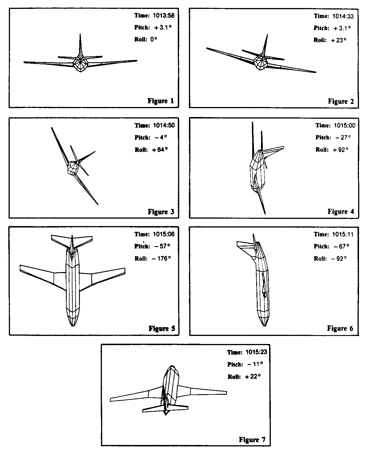 The captain said that about the time the ADIs rotated, the flight engineer told him that the other three engines had lost thrust and that the "airplane dropped all of a sudden." He pulled back on the control column, but the indicated airspeed continued increasing rapidly until it exceeded the airplane's maximum operating speed (Vmo) 6/. During this part of the "upset," the first officer said that his ADI had rotated to the left in the same manner as the captain's and that he did not see any ADI failure flags or lights. He said that, at that point in the flight, he saw that both the captain's and his ADIs "had malfunctioned," that the airplane was out of control, banking left and right, and that he felt that it was in a steep bank.