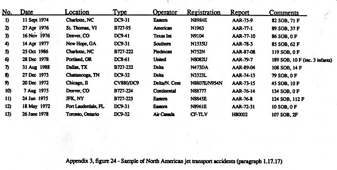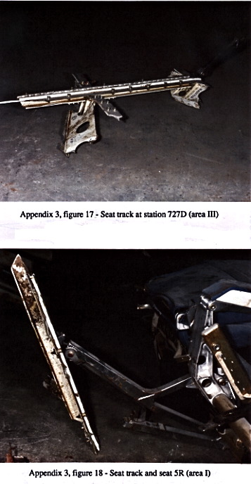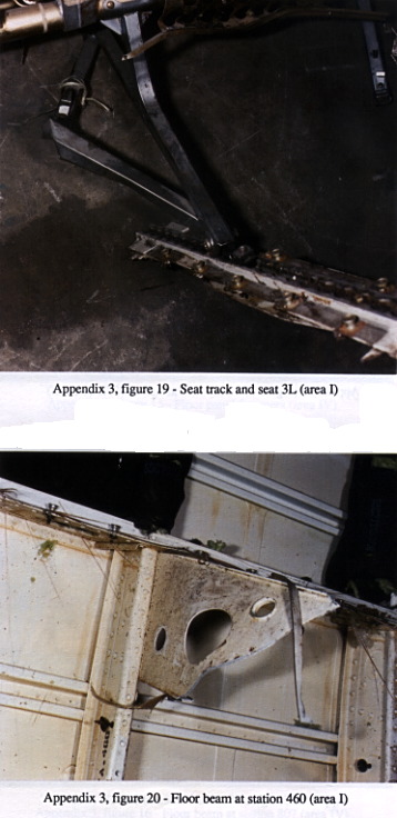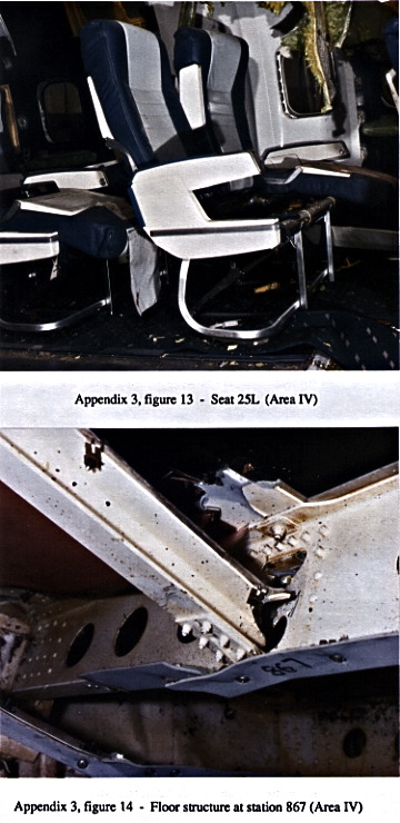 | 42. | The incidence of passenger fatality was highest where the floor had collapsed in the forward section of the passenger cabin and in the area just aft of the wing. The cabin floor and the passenger seating remained almost entirely intact within the overwing and tail sections. |