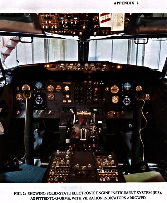 | 7. | The flight crew did not assimilate the readings on the engine instruments before they decided to throttle-back the No 2 engine. After throttling back the No 2 engine, they did not assimilate the maximum vibration indication apparent on the No 1 engine before they shut down the No 2 engine 2 minutes 7 seconds after the onset of vibration, and 5 nm south of EMA. The aircraft checklist gave separate drills for high vibration and for smoke, but contained no drill for a combination of both. |
