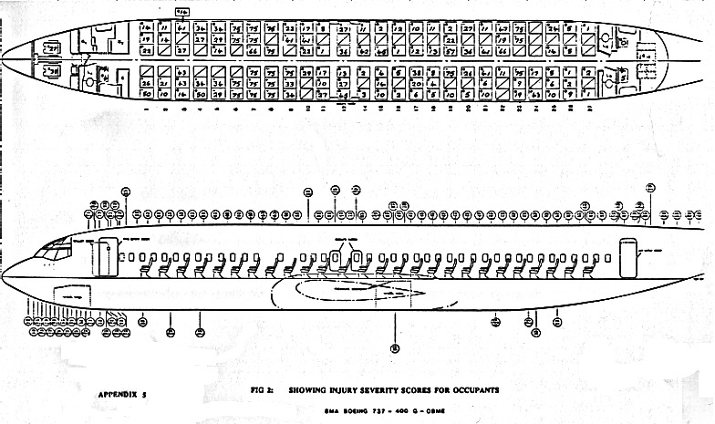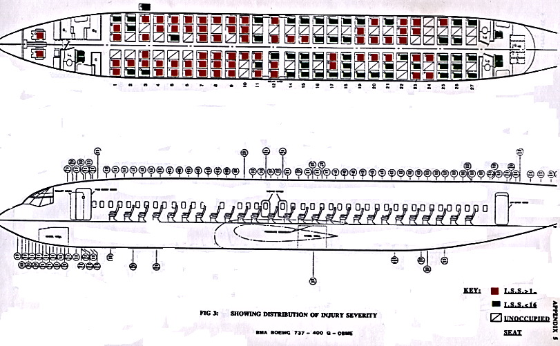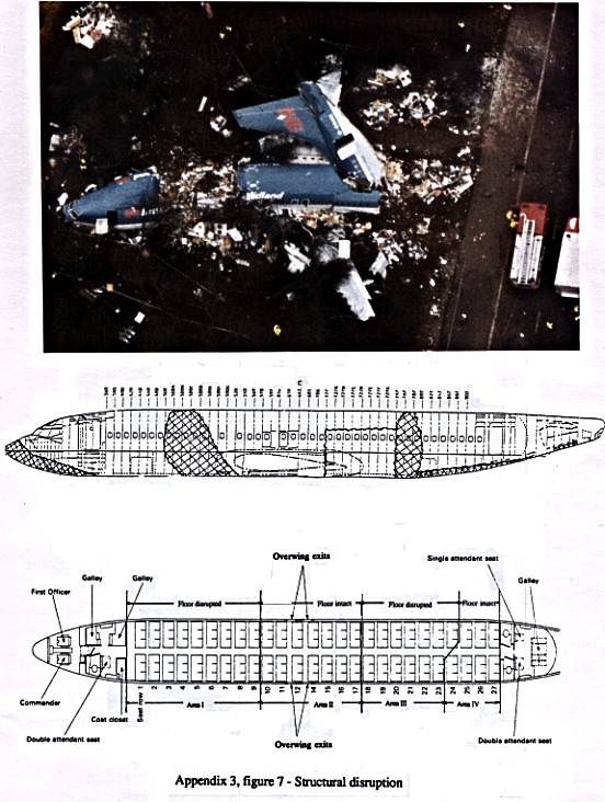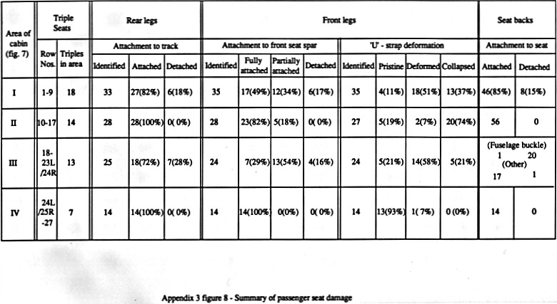| 46. | Passenger survivability was improved due to the passengers seats being of a design with impact tolerance in advance of the current regulatory requirements. This was most evident in the overwing and tail sections of the cabin, where the floor had remained intact. |