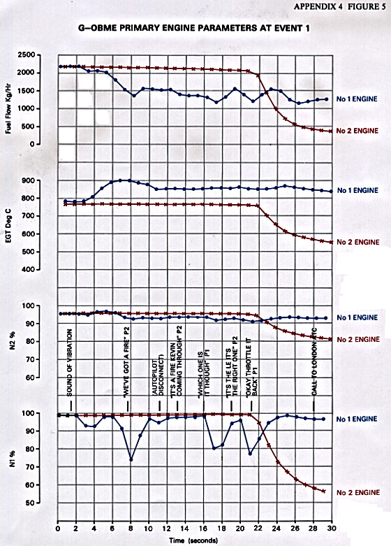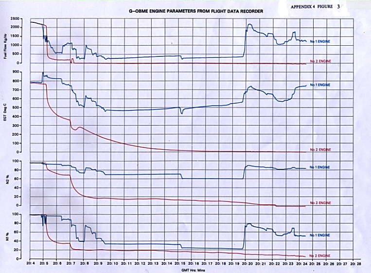 | 4. | After the autothrottle was disengaged, and whilst the No 2 engine was running down, the No 1 engine recovered from the compressor stalls and began to settle at a slightly lower fan speed. This reduced the shuddering apparent on the flight deck, convincing the commander that they had correctly identified the No 2 engine as the source of the problem. |