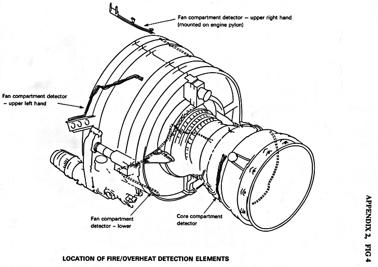| 37. | The engine fire and overheat detection system contained a fault which could have rendered it incapable of providing warning of a fire in either engine. However, the CVR evidence indicated that it did, in fact, provide a warning of the fire in the No.1 engine. The flight crew did not activate the fire handles. |