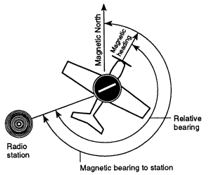 The horizontal direction to or from any point, usually measured clockwise from true north, magnetic north, or some other reference point through 360 degrees. (PCG)Because aircraft can determine from which direction the signal is coming, they can `home in on', fly in the direction of, the signal to arrive at the beacon.