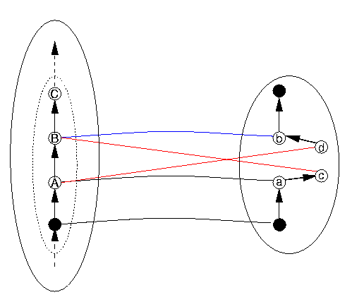 One of the easiest such concrete situations to grasp is one in which there is an additional element in the order DR that does not appear between the appropriate two elements in DS. This situation is illustrated in Figure 13 (in which we leave out the NotADatum area on the DR side for visual simplicity). The interpretation of Figure 13 in terms of the situation in Figure 12 is to take